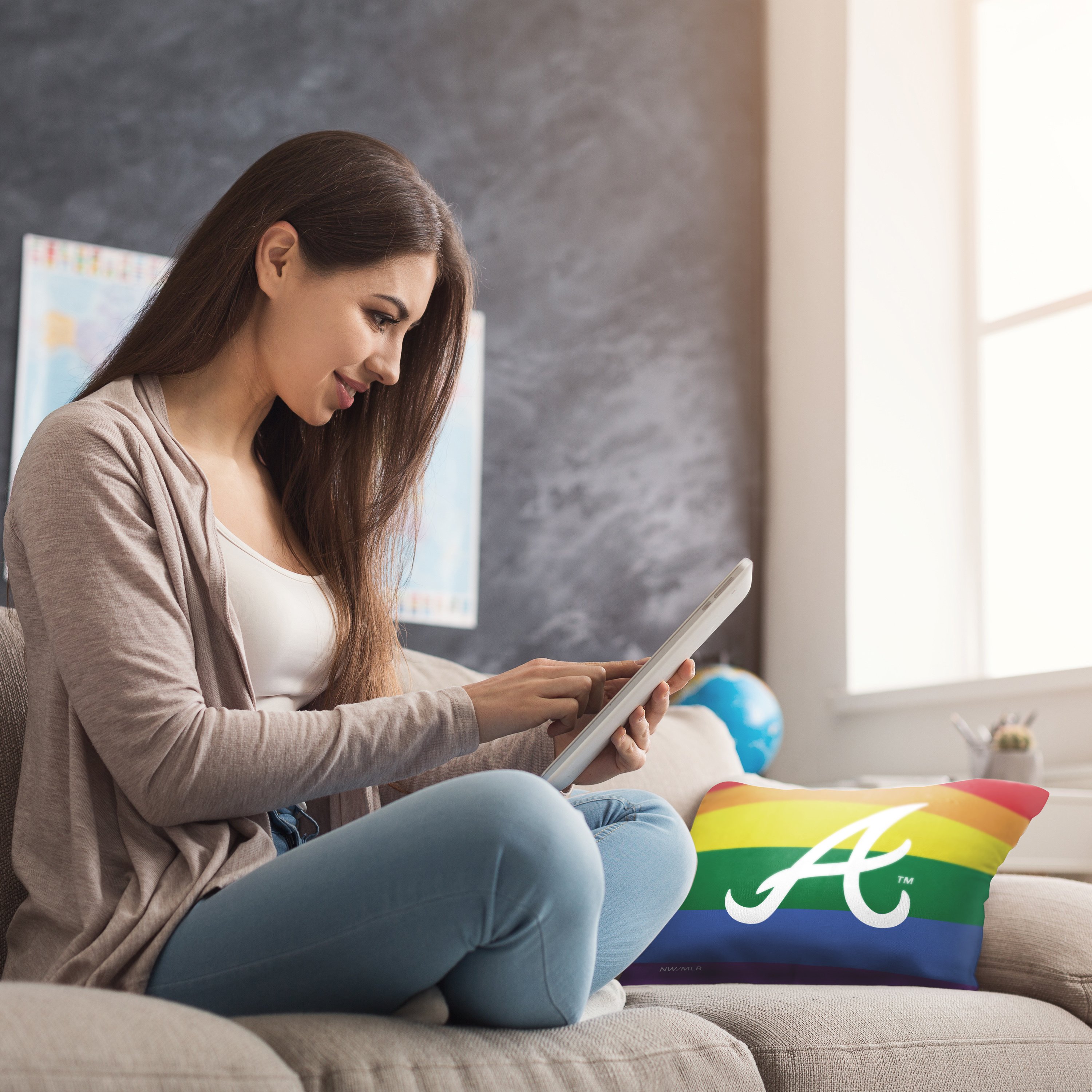 Express your vibrant team spirit with our MLB "Pride" super soft double-sided decorative pillow! Measuring 18" x 18" and made of 100% polyester, this pillow offers a luxurious and comfortable feel. Its captivating design features a rainbow-colored background, adorned with your team's logo one side, the other is solid with team's name and rainbow-colored "PRIDE". This pillow is a must-have addition to your collection. Bring a burst of color and support for diversity into your home!
