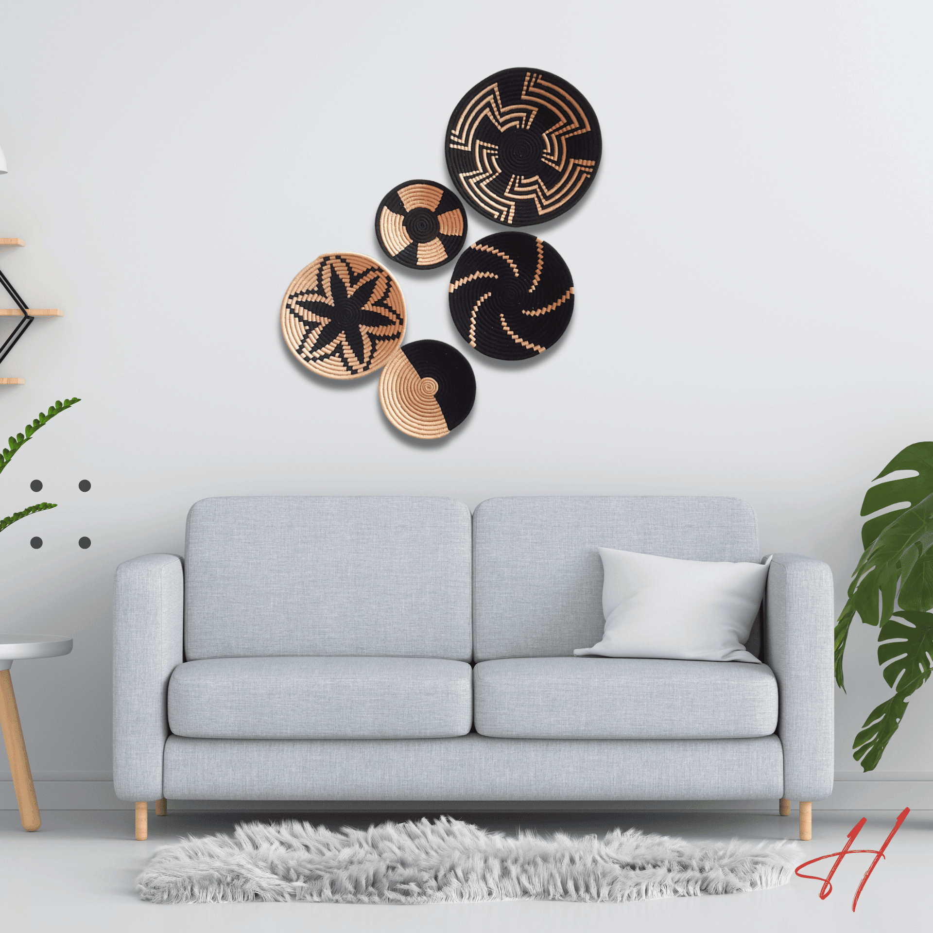 Elevate your space with this exquisite Handwoven Wall Decor Set, featuring 5 intricately designed pieces in striking black and natural tones. Perfect for adding a touch of artistry and sophistication to your walls or tabletops.
